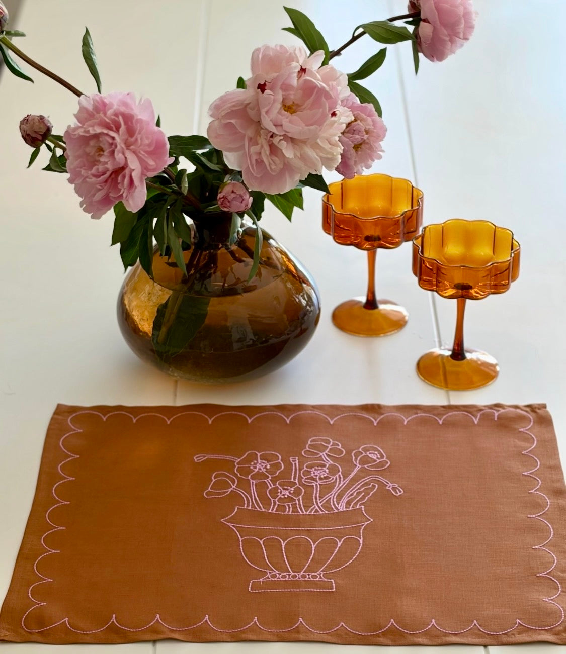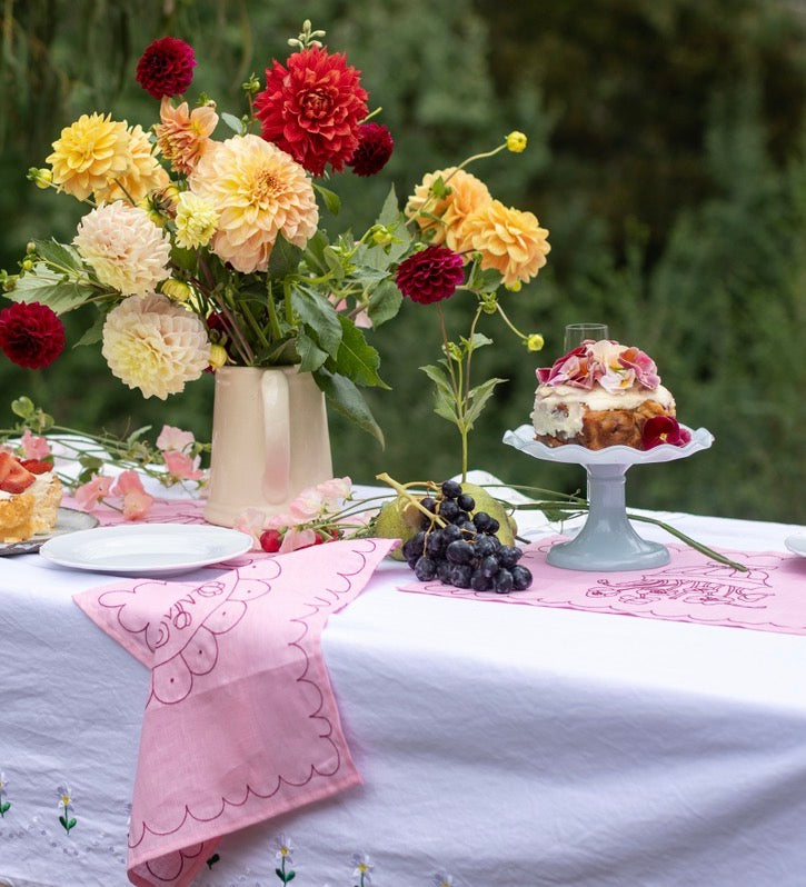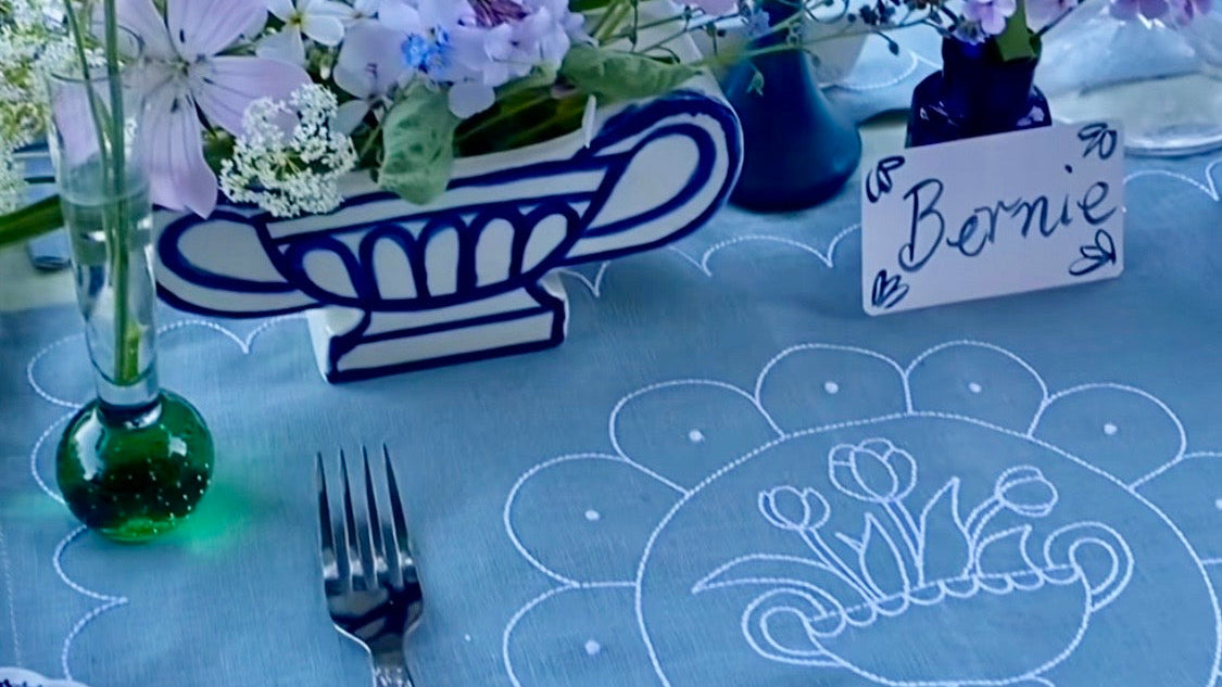 Our collaboration with ceramic artist Janae Paquin - Bowden brings together two creative worlds her sculptural pottery and our love of linen, texture and timeless design. hand drawings from Janae's artwork have been reimagined as embroidery on linen.